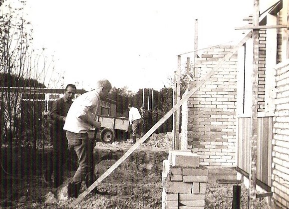 Een jonge Henk Roddenhof helpt in 1969 met de bouw van de kantine