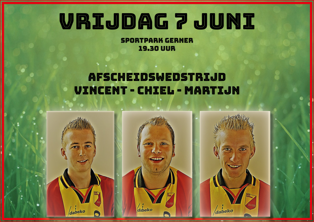 De afscheidswedstrijd voor de drie vertrekkende spelers begint op 7 juni om 19.30 uur, de kantine is die avond geopend. Meer informatie over de samenstelling van de teams volgt binnenkort.