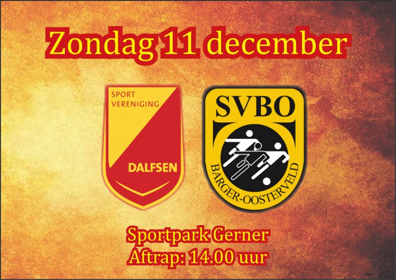 Komende zondag speelt SV Dalfsen haar laatste thuiswedstrijd van dit jaar tegen SVBO. De Geel-Zwarten uit Barger Oosterveen staan net...