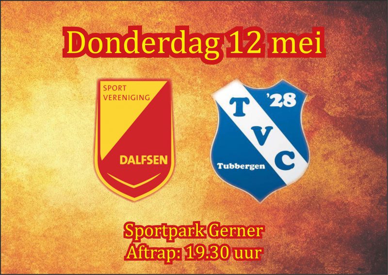Komende donderdag (12-5) speelt Dalfsen een doordeweekse thuiswedstrijd tegen TVCโ28 uit Tubbergen. De tukkers staan op een verdienstelijke zesde plaats...