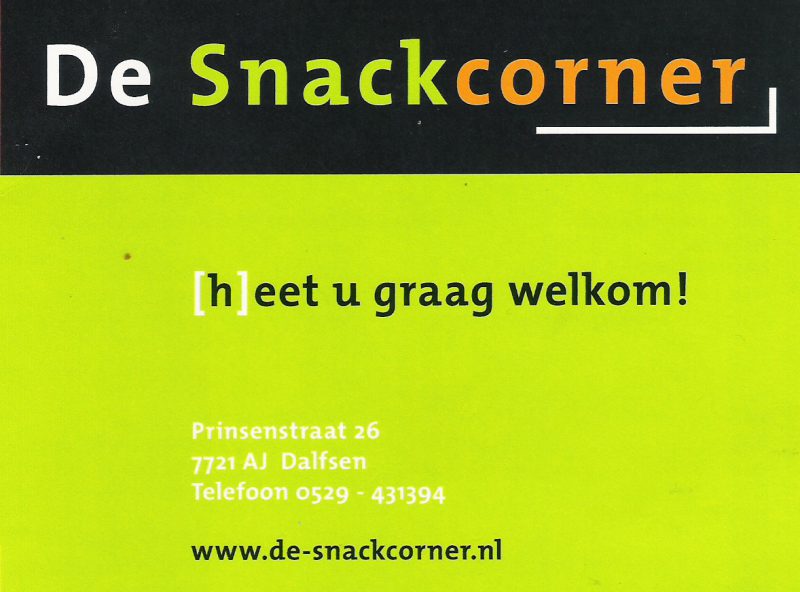 De ballensponsor voor de wedstrijd SV Dalfsen 1 โ SV Dedemsvaart 1 is Cafetaria en Lunchroom De Snackcorner uit Dalfsen....