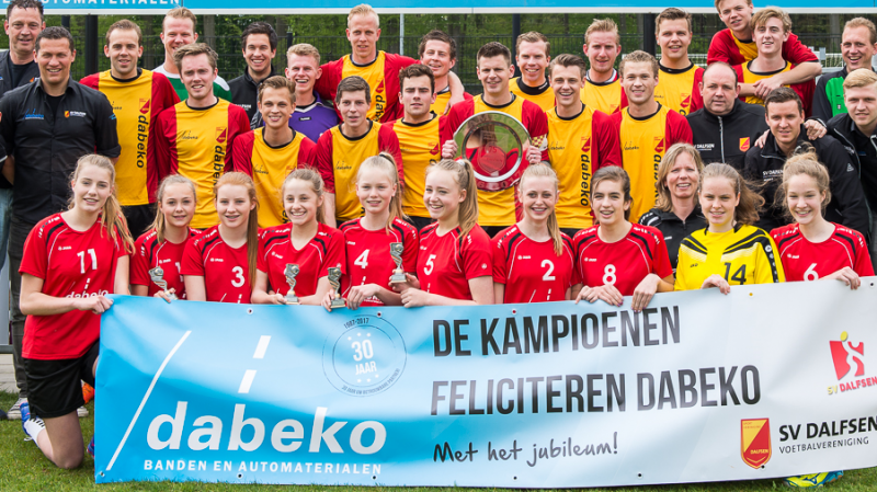 Dabeko Banden en Automaterialen uit Dalfsen bestaat dit jaar 30 jaar. De kampioensteams van SV Dalfsen Voetbal 1 en Handbal...