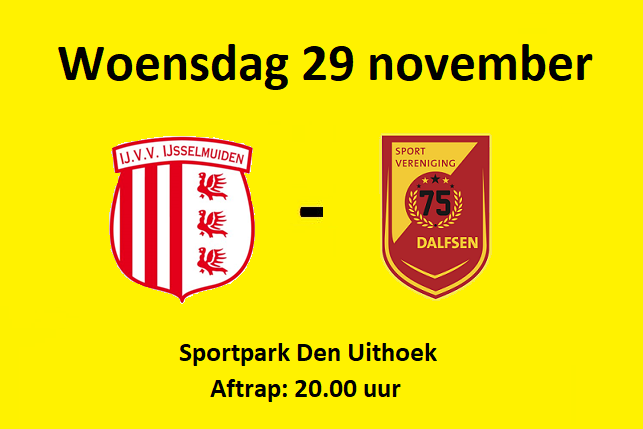 In de volgende ronde van de districtsbeker neemt Dalfsen 1 het woensdagavond op tegen IJVV. Het duel wordt gespeeld op Sportpark Den Uithoek in IJsselmuiden en begint om 20.00 uur.