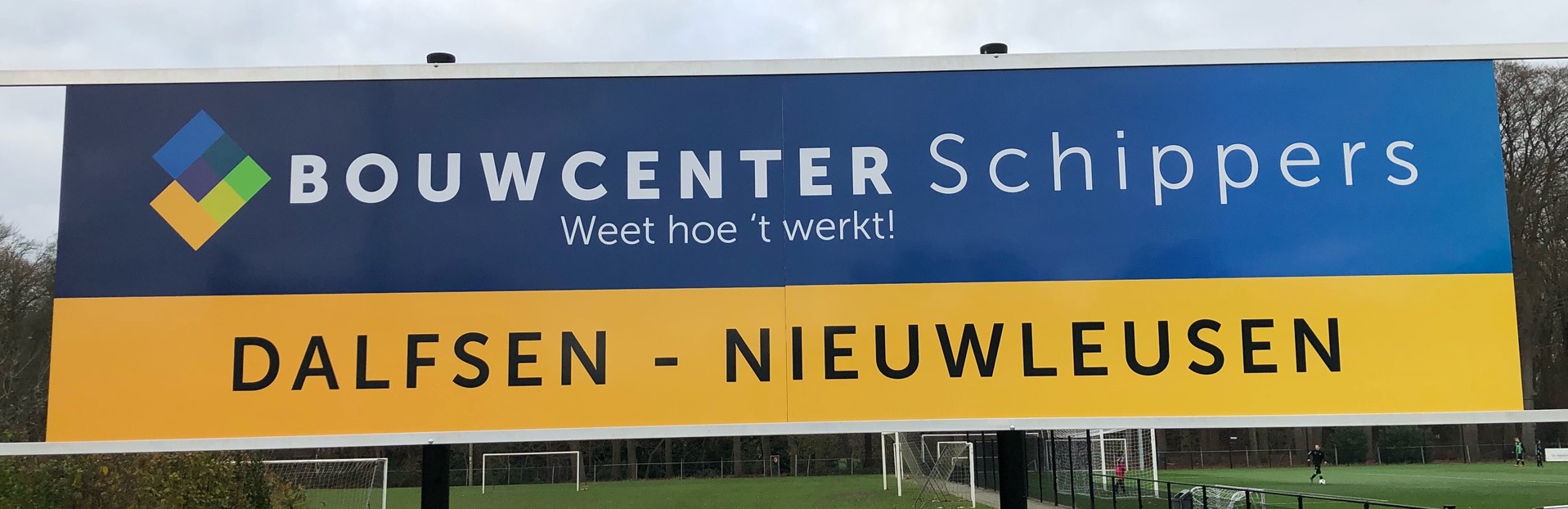 Afgelopen zaterdag is het door Printhuus vervaardigde dubbelzijdig bedrukte bord geplaatst. Wij zijn trots op dit mooie bedrijf uit Dalfsen en Schippers is trots op SV Dalfsen want Bouwcenter Schippers weet hoe ’t werkt!