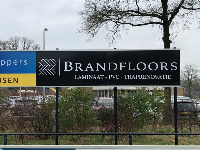 Brandfloors uit Nieuwleusen is afgelopen week toegetreden tot de groep van bordensponsors op Sportpark Gerner. Met een superstrak zwart XXL reclamebord is de ambitieuze ondernemer een opvallende verschijning.