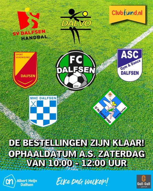 De bestellingen van de Clubfund actie zijn binnen en kunnen aanstaande zaterdag tussen 10.00 en 12.00 uur afgehaald worden bij Albert Heijn Dalfsen.