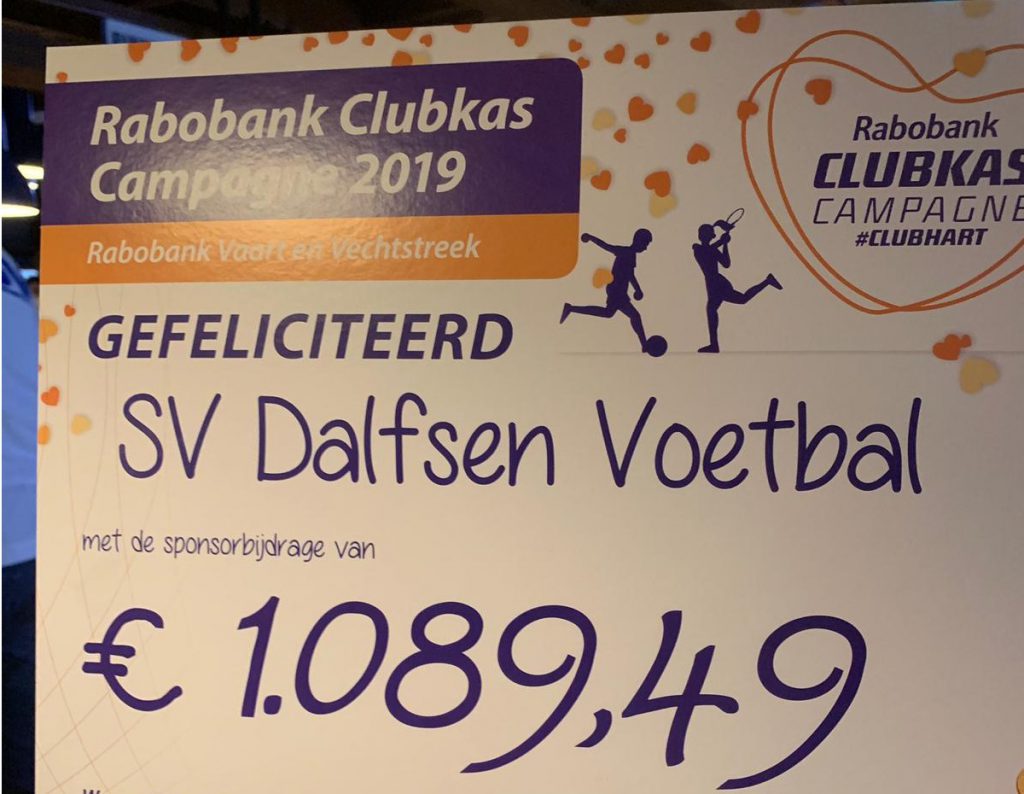 De Clubkas Campagne van de Rabobank heeft SV Dalfsen een bedrag van 1089,49 euro opgeleverd. Woensdagavond vond de uitreiking van de cheques plaats in het clubgebouw van USV in Nieuwleusen.