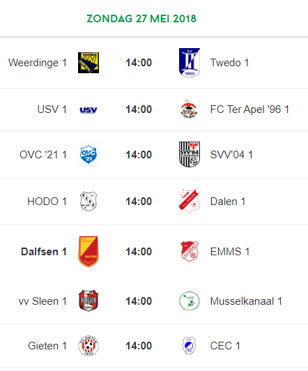 Spannender was de situatie op sportpark ’t Grootveld. Daar had de ongenaakbare koploper Dalen alle moeite met Weerdinge, dat nog een punt nodig had om zich definitief veilig te spelen. Lange tijd stond het daar 1-1, wat voor Dalfsen voldoende zou zijn om de koppositie te heroveren. De verwarring was groot toen de ene bron vervolgens 1-2 voor Weerdinge doorgaf en de ander 2-1 voor Dalen. Dat deze wedstrijd een kwartier langer duurde dan het duel tussen Twedo en Dalfsen kwam de zenuwen ook niet ten goede.ย Het gejuich was groot toen eindelijk het verlossende antwoord kwam.
