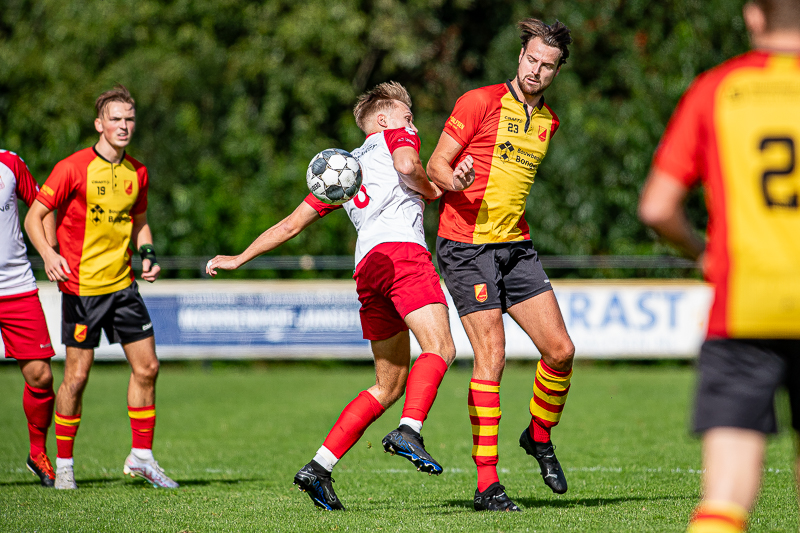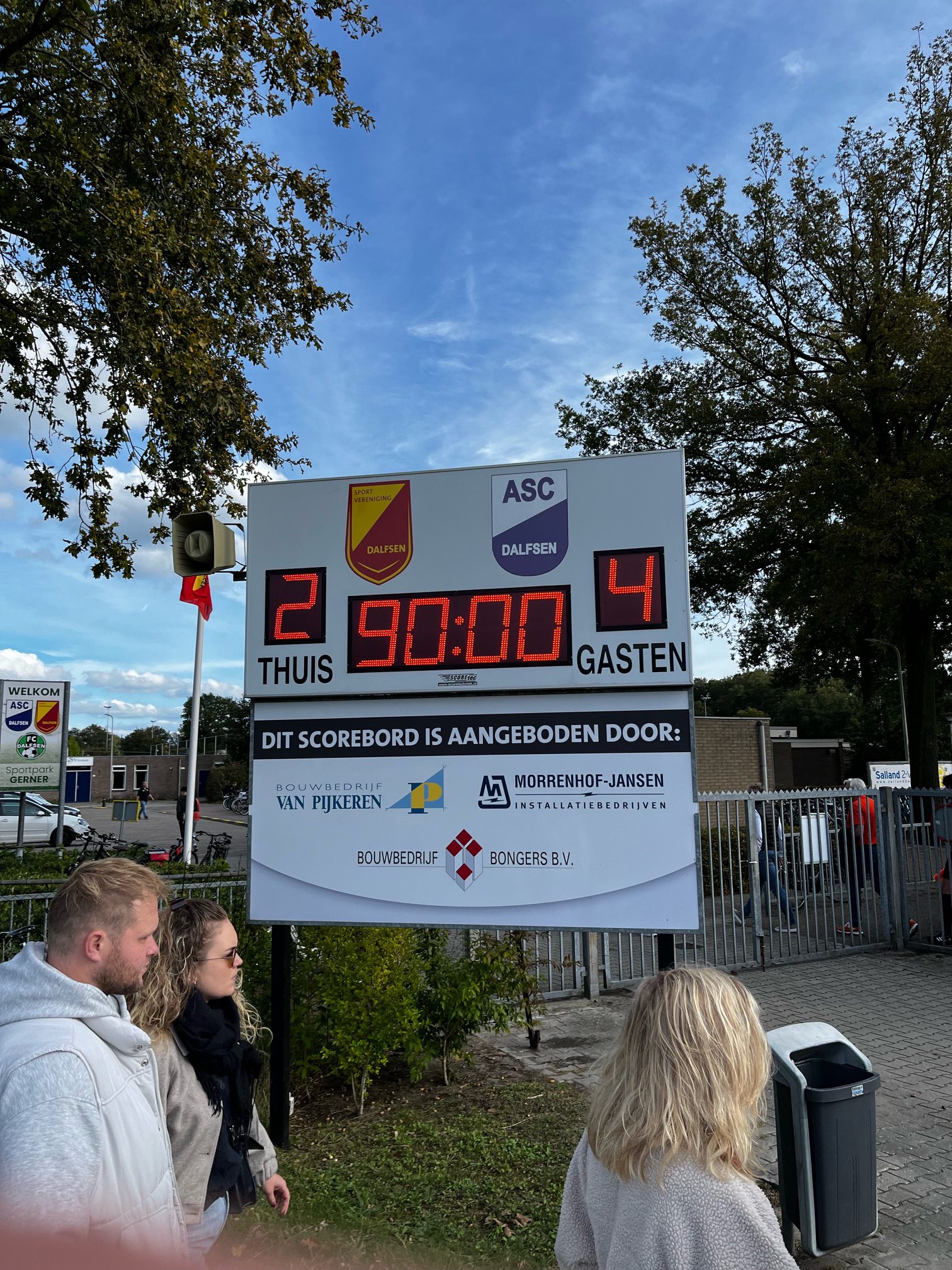 Na rust probeerde Dalfsen de achterstand weer te verkleinen, maar kreeg het de deksel op haar neus door een snelle counter van Dalen, 1-4. Dalfsen deed nog wel wat terug in de vorm van een precieze schuiver van Sam van den Anker, maar dichterbij kwamen de roodgelen niet. Zelfs niet toen Joren Rietman uit de tweede lijn tegen de paal schoot. Dalfsen heeft dus geen passend vervolg kunnen geven aan de uitstekende start van het seizoen en staat nu met drie punten uit twee wedstrijden op een zevende plaats.