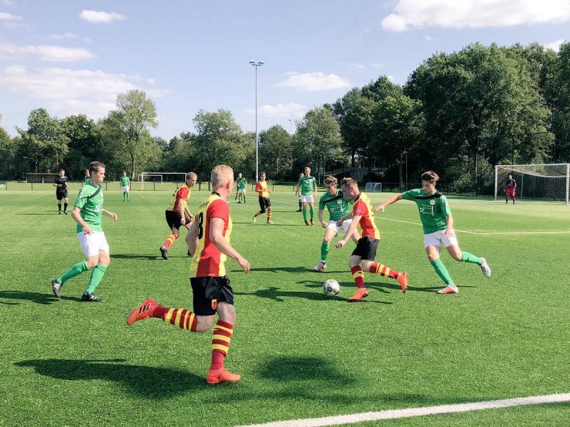 Direct na de thee namen de gasten brutaal de leiding en was het centrale verdediger Kay Huzen die keeper Mark Knol kansloos liet met een fraaie vrije trap. Blijkbaar waren de gastheren wakker geschud, want praktisch vanaf de aftrap stond de gelijkmaker al op het bord door toedoen van Remco Hultink. In het slotkwartier namen we afstand van USV. Hierbij was Bas Pietersma twee keer in korte tijd succesvol. De pijlsnelle aanvaller was de achterhoede te snel af en zorgde zo voor een geruststellende 3-1 voorsprong. Het slotakkoord kwam op naam van Joren Rietman, die met een van richting veranderd schot de 4-1 eindstand wist te noteren.