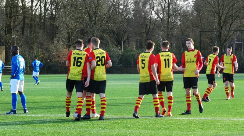 Na de rust was de eerste kans ook voor de thuisclub via Van Gelder, maar daarna namen we de wedstrijd behoorlijk in handen en was het wachten op de bevrijdende tweede treffer. Deze liet erg lang op zich wachten, waardoor het spannend bleef tot het einde. De bevrijdende 2-0 viel uiteindelijk vlak voor het verstrijken van de officiële speeltijd en kwam op naam van Niek van Ringen, die de wedstrijd definitief in het slot gooide. In de blessuretijd werd Daan Dalhuisen na een behoorlijke charge op Martijn Huizing door scheidsrechter Assink nog met een rode kaart van het veld gestuurd.