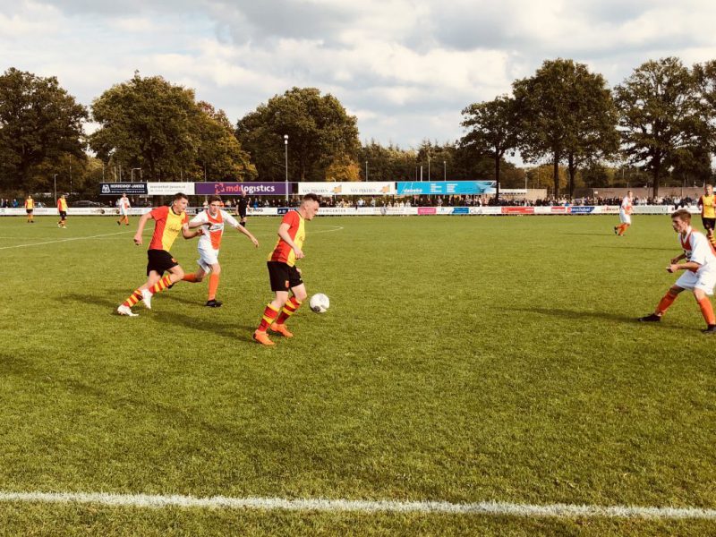 Ook werden we gevaarlijk bij een tweetal corners, waarbij de uitstekend spelende Stefan Jansen of Lorkeers het doel net niet wist te vinden. Ook was Erik Koedijk nog een keer dreigend. Zo’n twintig minuten voor tijd mocht Remco Hultink als invaller voor Luc van der Vegt zijn opwachting maken en hij zorgde meteen voor de nodige onrust in de Lemelerveldse defensie. Ruim tien minuten voor tijd werd het overwicht, dat gaandeweg de tweede helft was ontstaan, bekroond met een prachtig doelpunt van middenvelder Joren Rietman, die vanaf zo’n achttien meter schitterend raak schoot en keeper Ramaker volledig kansloos liet. De thuisclub probeerde in de slotfase alsnog een resultaat te halen en kreeg daartoe nog één grote kans. Matthias Reimink, die in Dalfsen nog een vrije trap in de kruising schoot, was nu niet in staat om dit kunstje te herhalen en dus bleef de 0-1 staan. Een hele prettige overwinning in een wedstrijd die bol stond van de spanning. Door dit resultaat kwamen we weer naast Lemelerveld op de ranglijst te staan, al bleven de gastheren ons natuurlijk op doelsaldo nog wel voor.
