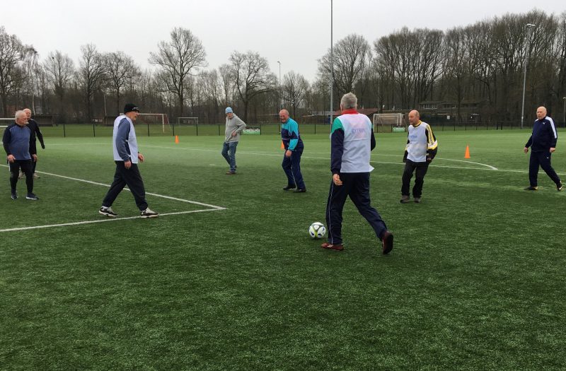 In het begin was het nog even wennen. Zo werden er wat dieptepasses verstuurd, maar kwam de groep er al snel achter dat balletjes in de voet beter werken. Al snel begon het te draaien en inmiddels lopen de combinaties vlekkeloos. Na een klein uurtje voetballen is het altijd wel weer mooi geweest en wordt er onder het genot van een kop koffie nog gezellig nagepraat.