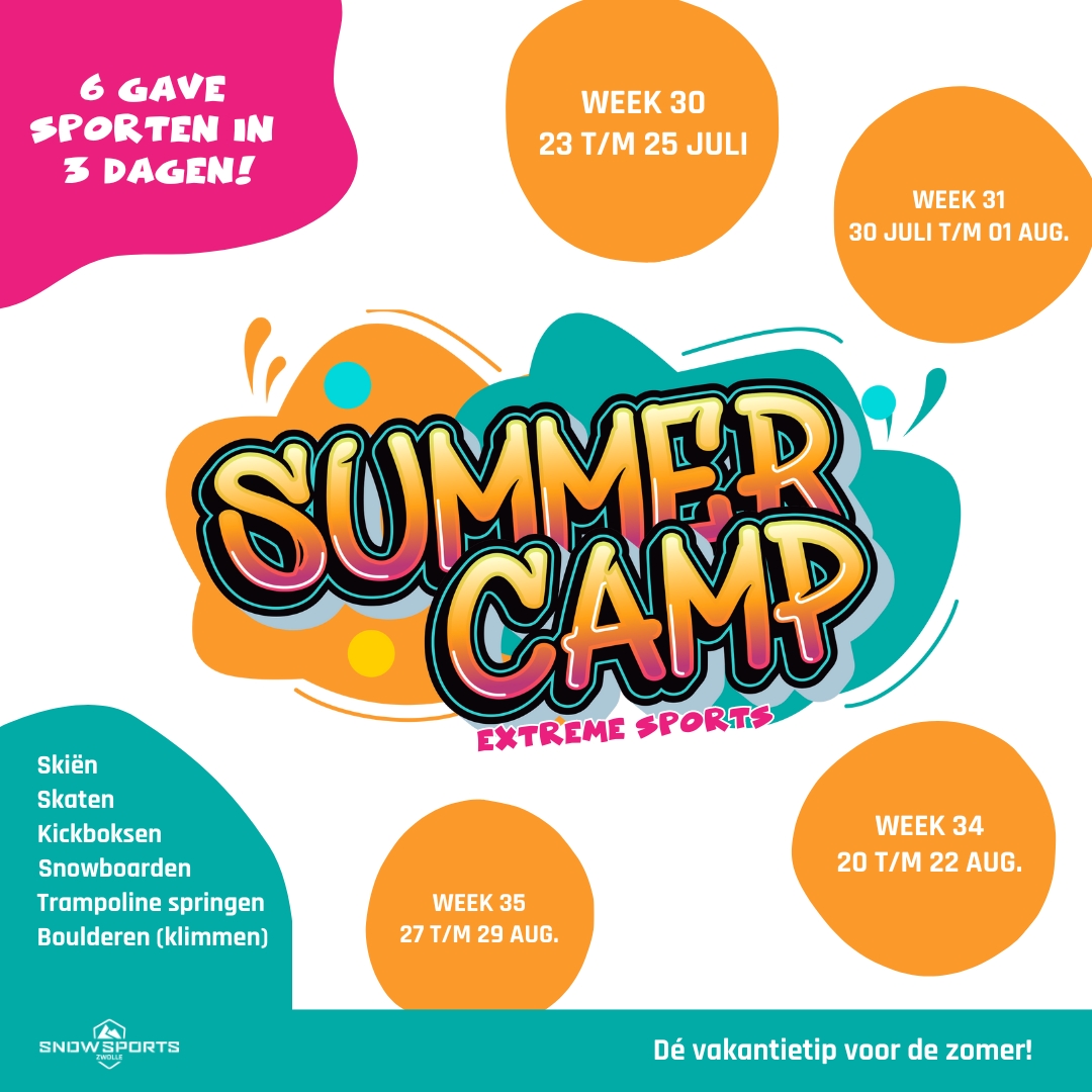 Heeft jouw kind wel zin in een sportieve uitdaging deze zomer? Voor kinderen tussen de 8 en 15 jaar hebben wij dé oplossing! Snowsports Zwolle organiseert, in samenwerking met de Zwolse sportbedrijven Skatepark Zwolle, Tabonon, Boulderhal Roest, en Funzone, het Extreme Sports Summercamp. Drie dagen vol actie van 09:30 tot 16:00 uur, waar avontuur en plezier hand in hand gaan.