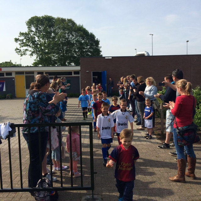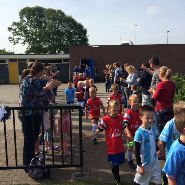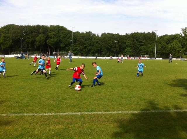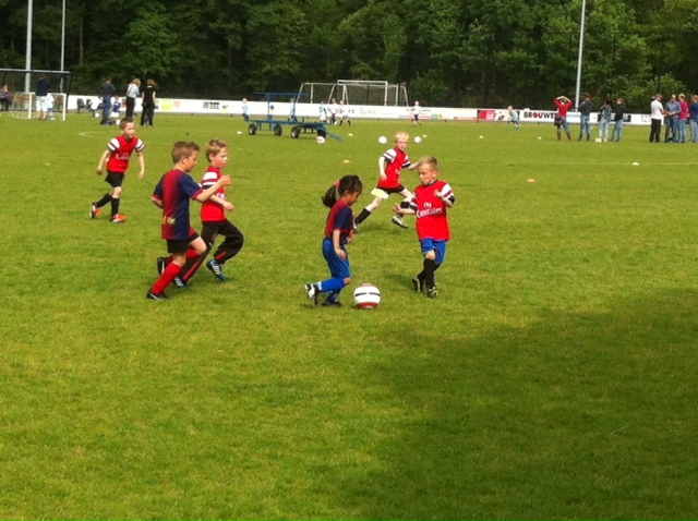 Op het hoofdveld werd per kwartier een partijtje gevoetbald en werden de teams gerouleerd. Aansluitend mocht iedereen penalty’s schieten. Ten slotte was er voor de jongens en meisjes ranja en chips in de kantine. Al met al een mooie afsluiting.