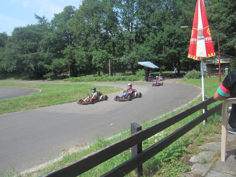 Rond één uur had iedereen het eten op en maakten we ons klaar voor het vertrek richting de kartbaan in Wijthmen. Daar aangekomen werd er even kort uitgelegd hoe alles werkt en kon iedereen twee keer vijf rondes rijden over het Karba-circuit. De begeleiding genoot van de inhaalacties en vooral van een paar mooi botsingen. De mooiste inhaalactie kwam dit jaar op naam van de jarige Storm van Hessem, die eerder die dag nog fanatiek werd toegezongen.