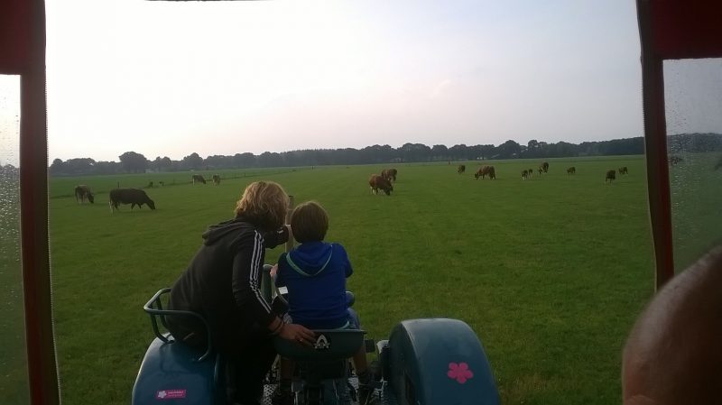 Tijdens de safari werd van alles uitgelegd over het oude Hollandse ras Brandrode Vechtdal Rund, over de verhoudingen binnen de groep (รฉรฉn vrouw is altijd de baas) en over de avonturen van stier Remco. Daarnaast mochten de kinderen (klein en groot) om beurten de historische trekker besturen welke de safarikar trok. ย En met verdere inwendige versterking in de prachtige entourage van de Vecht werd het zo bijzonder gezellig. Marc en Jolanda (De Barones) en Simone (Koesafari) hartelijk dank!