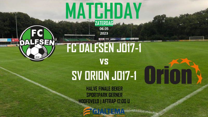 Zaterdag 6 mei speelt FC Dalfsen JO17-1 om 12.00 uur de halve finale van de KNVB Beker. Met Orion JO17-1 uit Nijmegen komt de huidige koploper uit Divisie 5 op bezoek in Dalfsen.