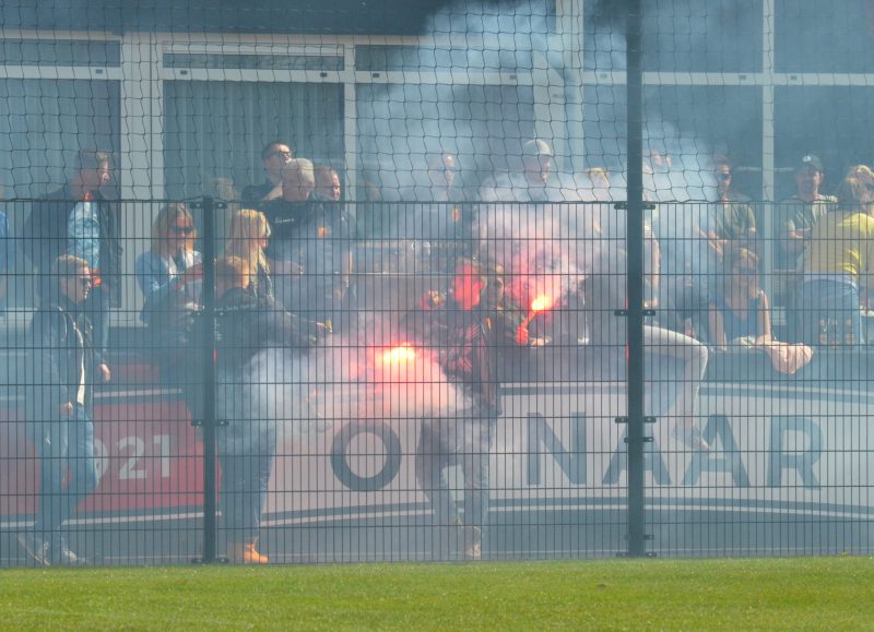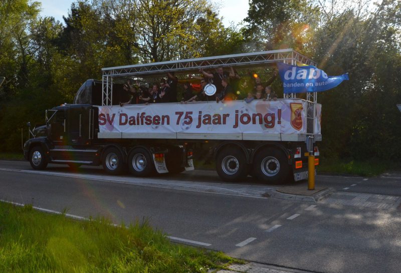 31. Onder stralende omstandigheden arriveren spelers en supporters van SV Dalfsen op Sportpark Meermanskamp in Holten. Twee rondes voor het einde is een gelijkspel voldoende voor het kampioenschap. (April)