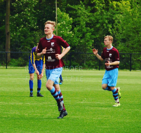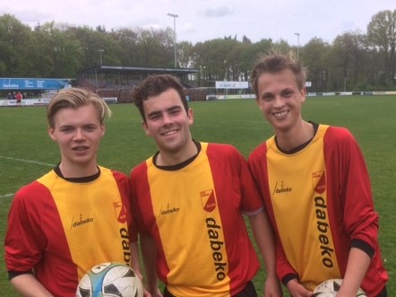 49. In het slot van de competitie krijgt de jeugd de kans bij Dalfsen 1. Stijn Brekveld (links) en Nik Busscher (rechts) debuteren, terwijl Joren Rietman (midden) en Maarten Pouwels al volop speelminuten maakten tijdens het seizoen. In de laatste competitiewedstrijd debuteert ook doelman Iwan Haarman (16). (Mei)