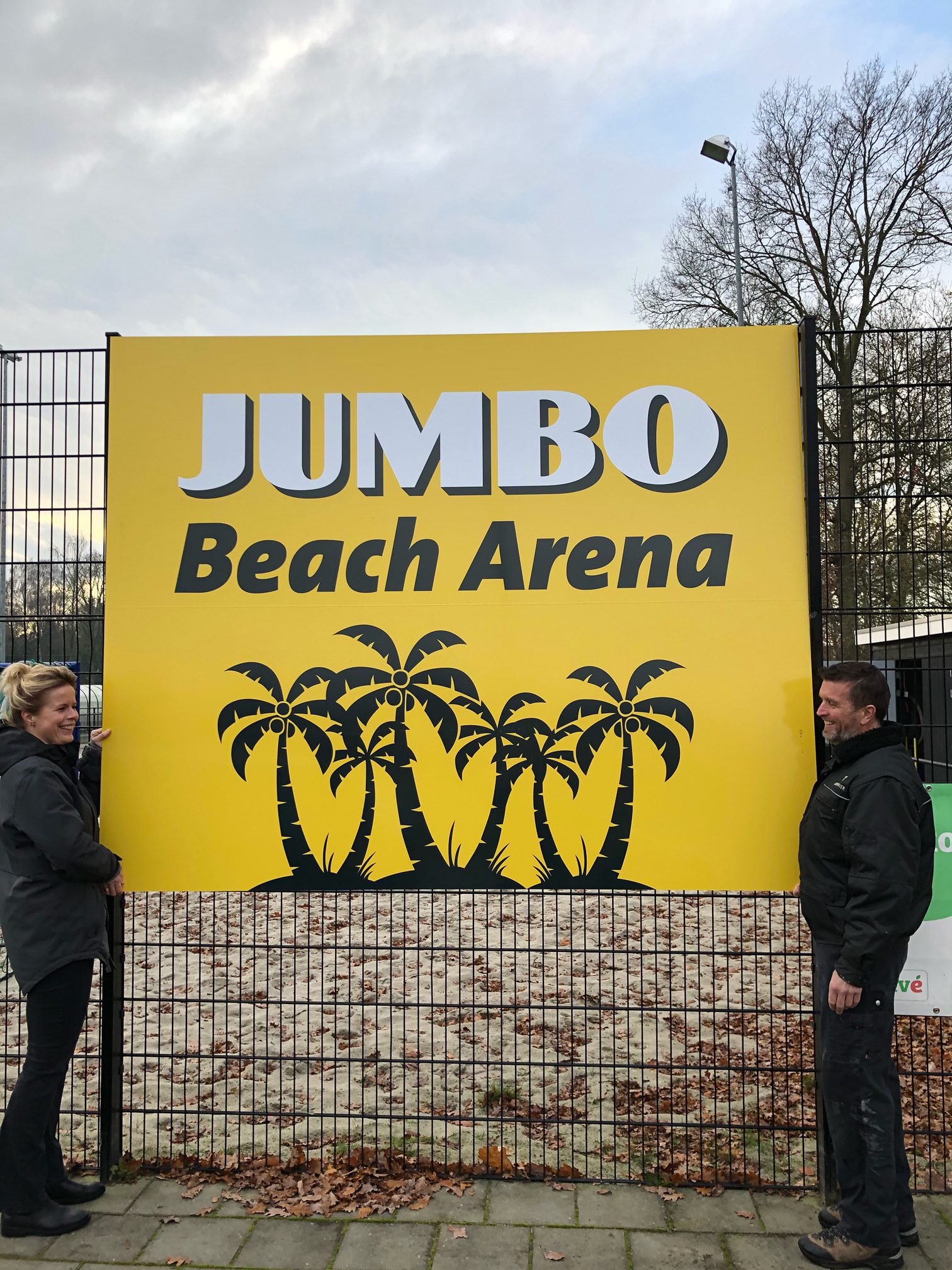 Inmiddels is het ontwerp gereed en zijn de borden door Printhuus afgeleverd. Komende weken worden de borden geplaatst en zal het beachveld op Sportpark Gerner verder gaan als de Jumbo Beacharena. Bijgaand vast een voorproefje.