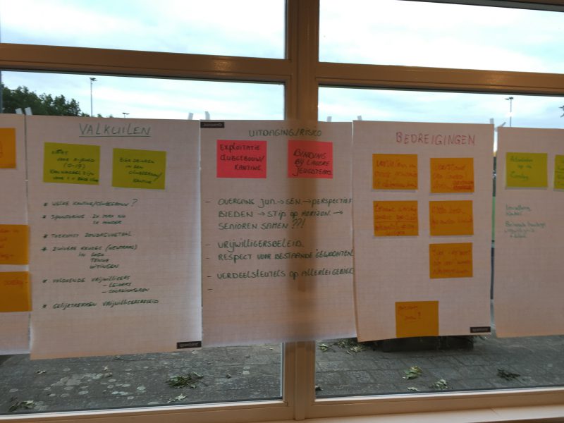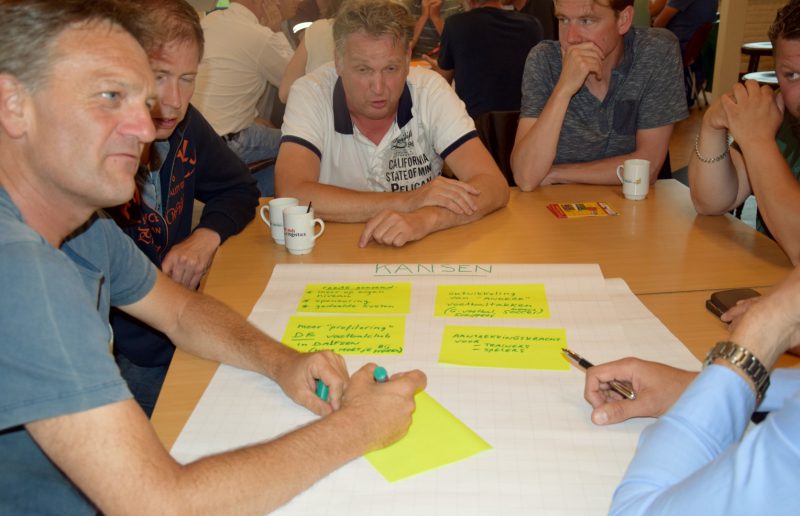 Om een goed en onderbouwd voorstel aan de leden te kunnen laten zien, moeten dus bepaalde zaken in kaart worden gebracht en uitgewerkt. En deze meedenkavond was de aftrap hiertoe. In kleine groepjes ging men uiteen in denkrondes. Eerst werden kansen en mogelijkheden ingebracht en uitgewisseld en daarna kwamen de valkuilen aan bod, waarvoor ook oplossingen geboden werden. Alles wat deze avond gezegd, genoteerd en van belang is, wordt meegenomen als startnotitie voor het vervolgtraject om een toekomstbestendige jeugdafdeling te realiseren.
