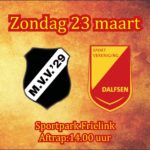 Na rust voerde Dalfsen de druk op en wist het via de snelle Sam van den Anker de aansluitingstreffer te scoren, 2-1. Dalfsen voelde dat er meer in zat en voerde de druk op het doel van MVV nog verder op. Diverse kansen werden gecreëerd maar tot een doelpunt leidde dit niet. Zeker niet toen MVV in de 96e minuut de 3-1 binnen werkte en het eindsignaal klonk. Dalfsen heeft het succes van vorige week dus geen vervolg kunnen geven. Volgende week is er weer een kans tegen Germanicus, de wedstrijd in Coevorden begint om 14.30 uur.