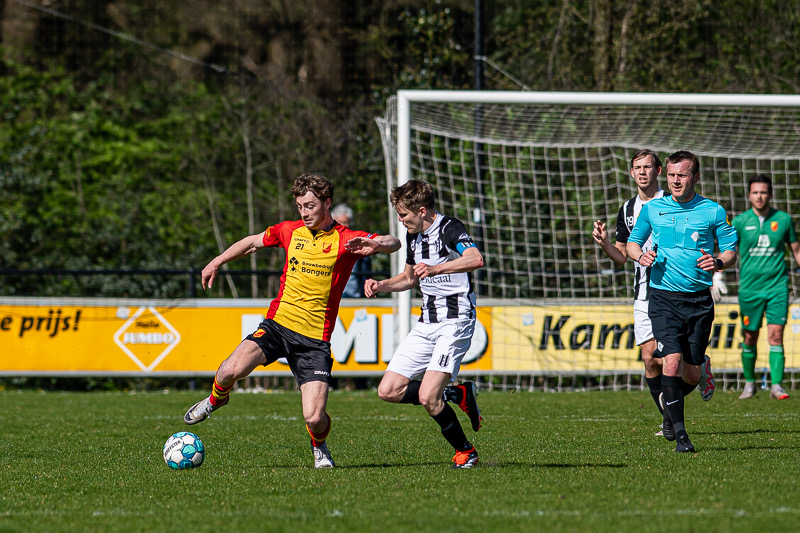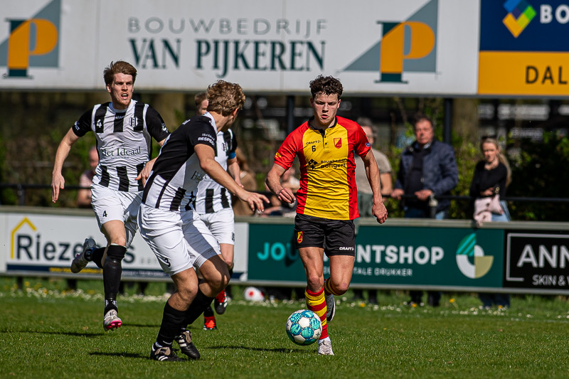 Ondanks een gelijk opgaande strijd opende NEO enigszins onverwacht de score door middel van een strak schot in de korte hoek. Dalfsen was echter niet onder de indruk en nam hierna brutaal het initiatief. Geholpen door de wind wist Ole Woltmeijer de gelijkmaker binnen te schieten en even later was het zelfs 2-1 voor Dalfsen door een mooie treffer van Joren Rietman. Tevreden werd de rust bereikt en maakte Dalfsen zich op voor een hete tweede helft.