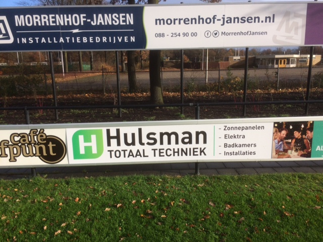 Afgelopen zaterdag is een nieuw reclamebord van de firma Hulsman Totaal Techniek geplaatst op Sportpark Gerner. Het bord is dubbelzijdig bedrukt en heeft een mooie plaats gekregen op de lange kant van het hoofdveld. Wij danken de firma Hulsman voor de bijdrage aan onze vereniging.