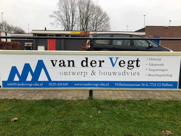 En weer is Sportpark Gerner een reclamebord rijker, Van der Vegt Ontwerp en Bouwadvies is hier verantwoordelijk voor. Het bord is zaterdagochtend geplaatst, net voordat het competitiegeweld weer losbarstte.