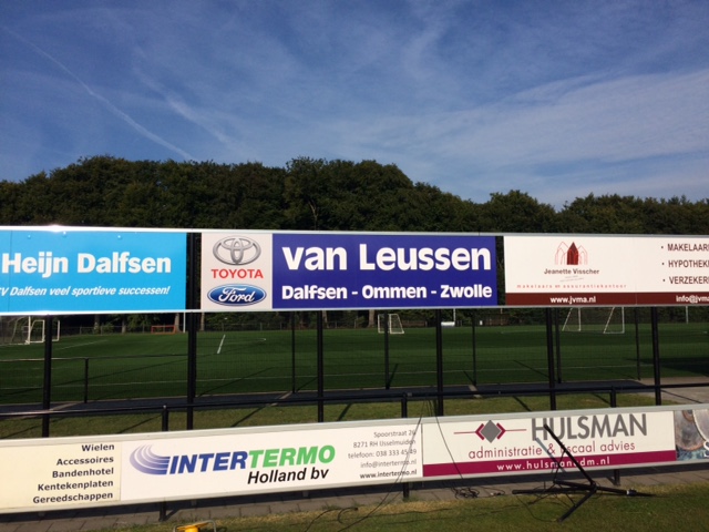 De tweede ring rondom het hoofdveld van Sportpark Gerner is sinds afgelopen week een sponsor rijker. Het betreft een XXL reclamebord van Autobedrijf van Leussen met vestigingen in Dalfsen, Zwolle en Ommen en officieel Toyota en Ford dealer. Wij danken de familie Van Leussen voor de ondersteuning van onze vereniging.