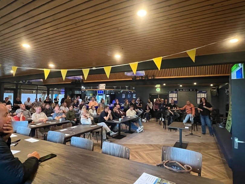 Na het eerste deel nam de werkgroep ‘clubnaam, logo en kleuren’ het woord over. Er werd teruggeblikt op de eerste informatiebijeenkomst, met daarin een aangekondigde peiling.