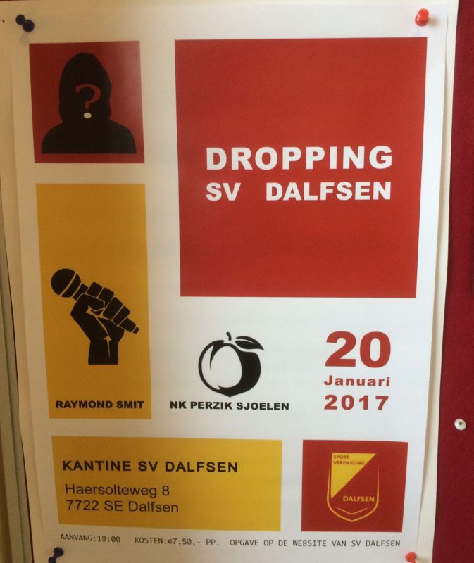 Geef je zo snel mogelijk op, want VOL = VOL! Aanmelden kan door een mailtje te sturen naar droppingsvdalfsen@gmail.com. Vermeld daarbij de teamnaam en het aantal personen. Het best verklede team krijgt een prijs!