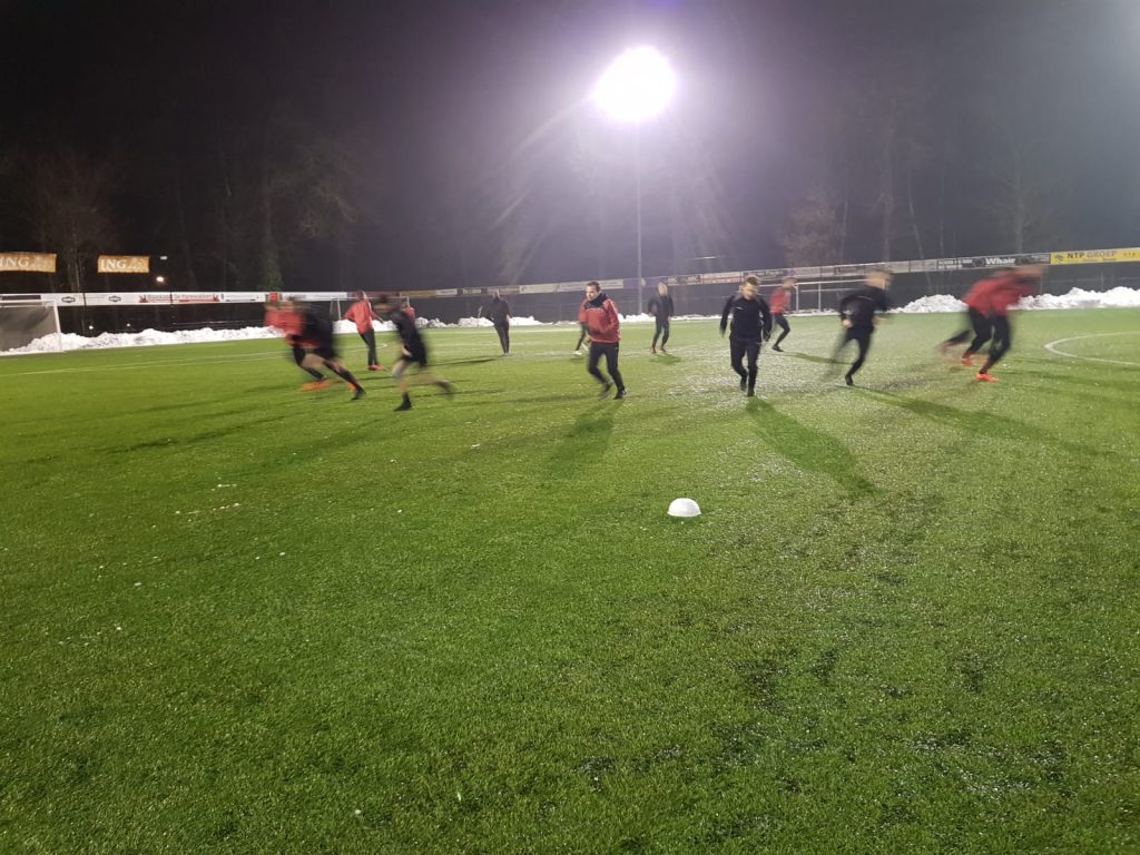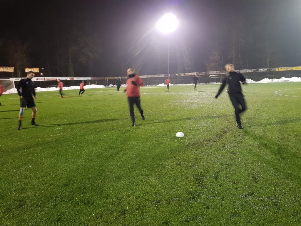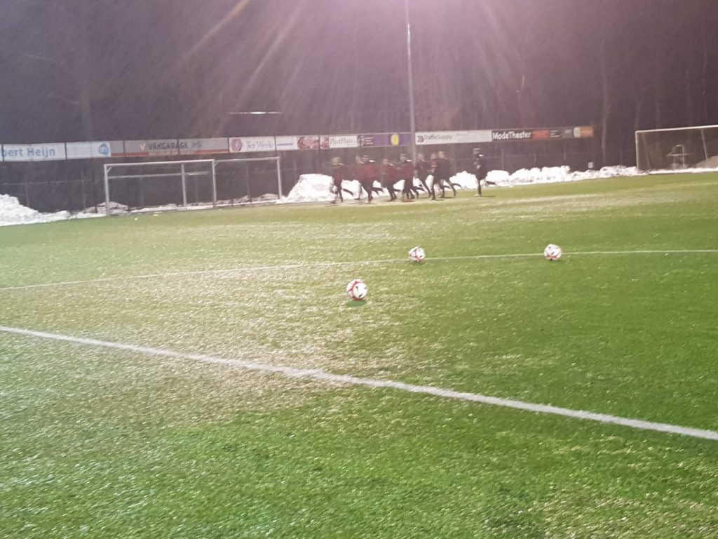 De velden op sportpark Gerner zijn nog onbespeelbaar, maar dat weerhoudt de selectie van Dalfsen 1 er niet van om op andere locaties te trainen. Dit weekend werkt de ploeg zich op vrijdag en zondag in het zweet in Hattem, waar de velden van sportpark ’t Achterveen sneeuwvrij zijn gemaakt. Eerder deze week trainde Dalfsen 1 al in de overdekte voetbalhal bij vv Berkum.