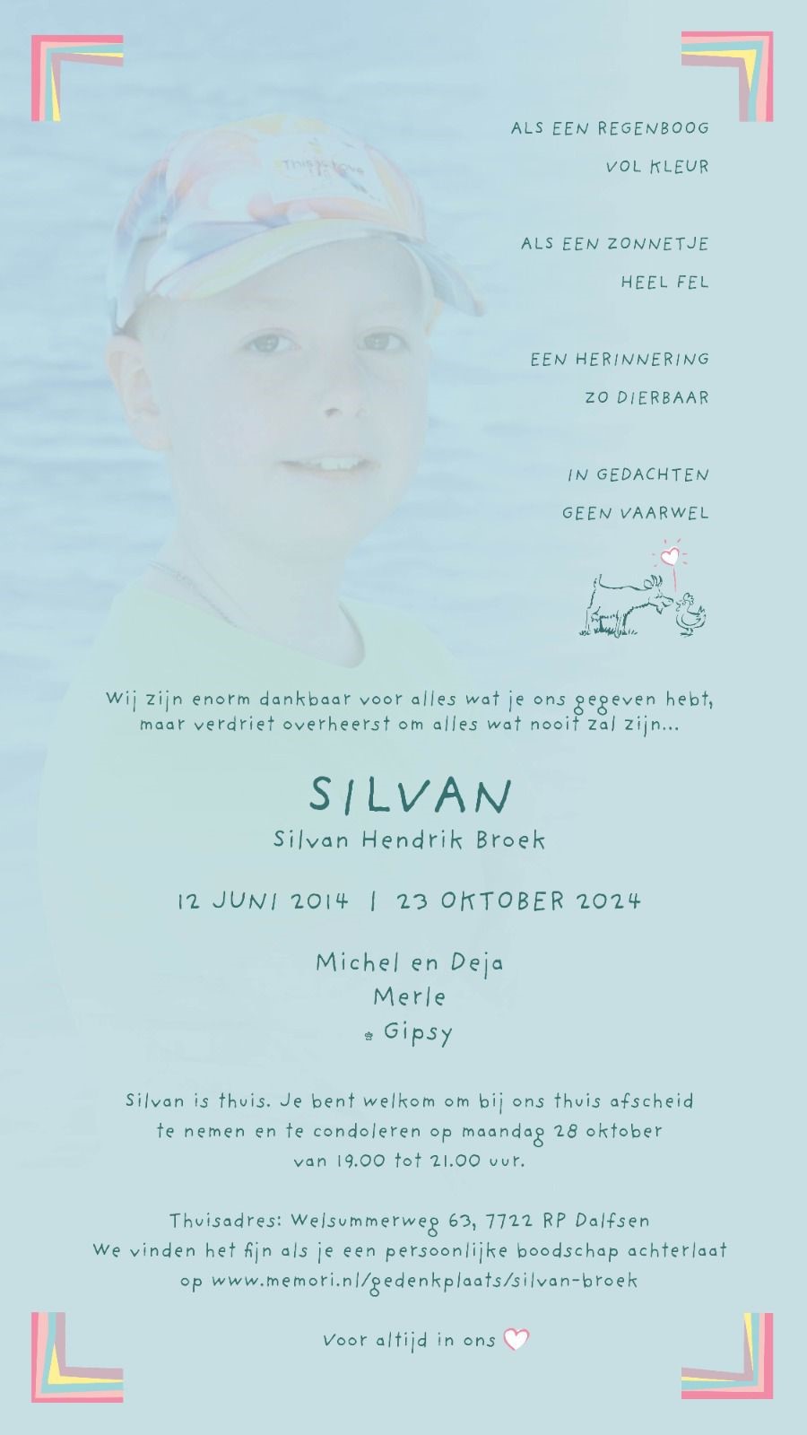 Diep geraakt zijn wij door het overlijden van Silvan Broek, jeugdspeler van FC Dalfsen. Namens het bestuur van SV Dalfsen wensen wij de familie en vrienden heel veel sterkte.