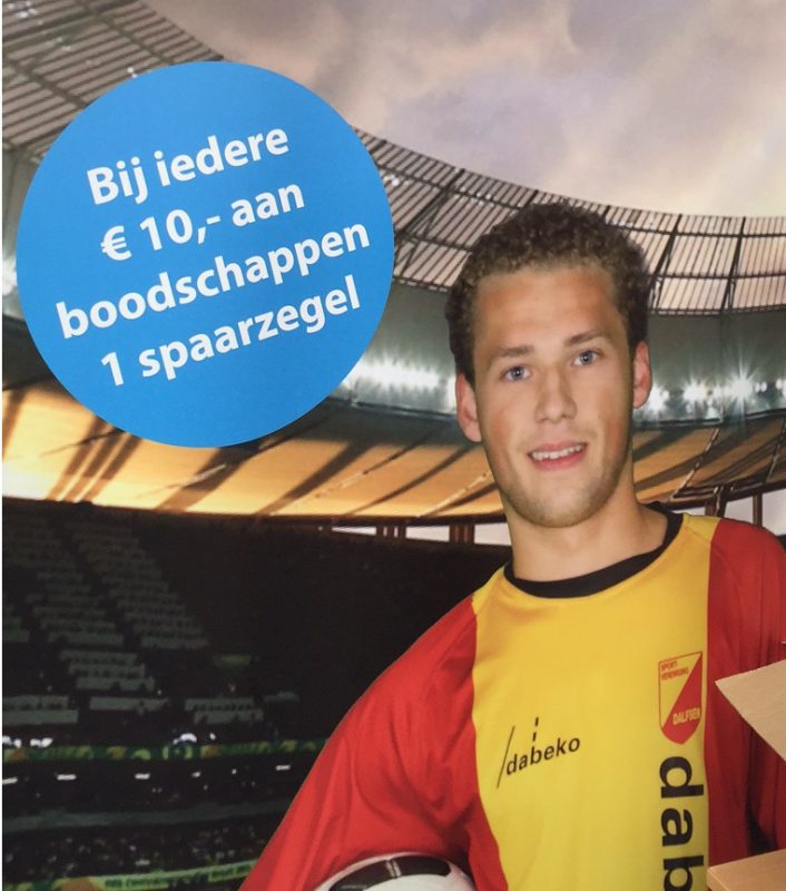 Hoe werkt het? SV Dalfsen heeft van iedere speler, zowel jeugd als senioren, een unieke spelersfoto gemaakt. Iedere speler heeft een eigen online-fanshop, waarin allerlei leuke fanartikelen met de eigen spelersfoto verkrijgbaar zijn. Denk aan een poster, notitieblok, broodtrommel, drinkbeker of badslippers. Bij Albert Heijn Dalfsen kan je vervolgens sparen voor gratis fanartikelen. Bij iedere โฌ10,- boodschappen krijg je een zegel. Deze zegels kan je vervolgens in je eigen fanshop verzilveren. Natuurlijk kunnen anderen ook sparen voor fanartikelen van hun kind, kleinkind of favoriete speler.