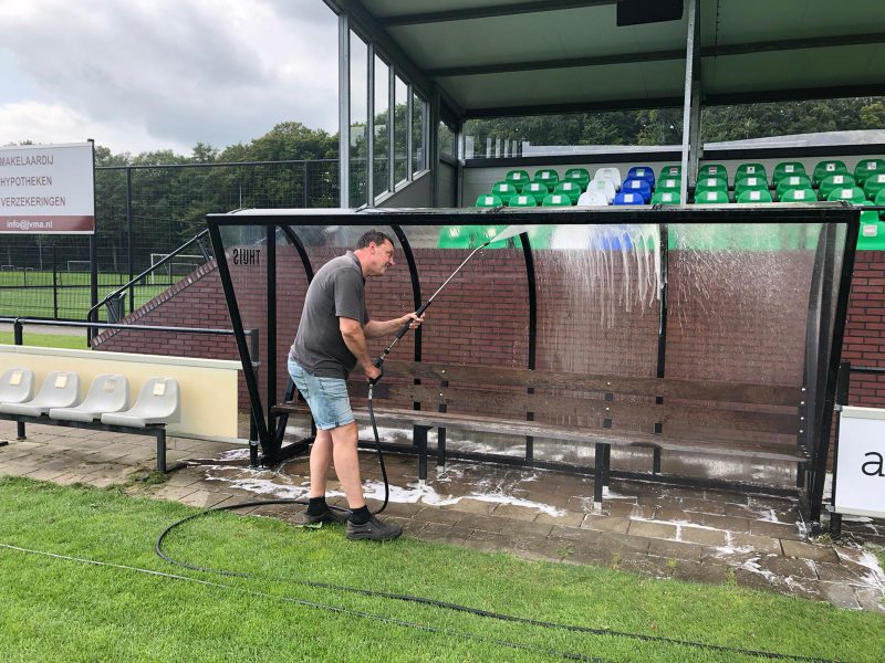 De jaarlijkse klussendag op Sportpark Gerner is voortreffelijk verlopen. Het weer was goed, de opkomst boven verwachting en de sfeer uitstekend. Rond 08.00 uur verzamelden zich zo’n 40 handige Harry’s in de kantine waar ze werden getrakteerd op een heerlijke kop koffie van erevoorzitter Jos Ramaker. Na de koffie werden de vrijwilligers in groepjes aan het werk gezet door de klus coördinatoren Pascal Maats en Jan Bosch. Tussendoor was er nog koffie met iets lekkers en soep en een warme snack. Er werd stevig gepoetst, geverfd, geschrobd en geschoffeld met als eindresultaat dat Sportpark Gerner er weer geweldig uitziet. Na afloop was er nog een gezellig hapje en drankje voor de uitgeputte klussers.