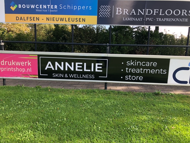 Sinds zaterdagochtend is Sportpark Gerner weer een reclamebord rijker, Annelie Skin & Wellness is de nieuwste aanwinst.