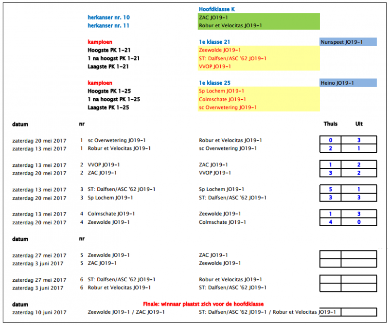 Komende zaterdag staat de eerste wedstrijd op het programma. Op Sportpark Gerner staan Dalfsen/ASC’62 JO19-1 en Robur et Velocitas JO19-1 om 14.30 uur aan de aftrap. De return vindt een week later plaats in Apeldoorn.