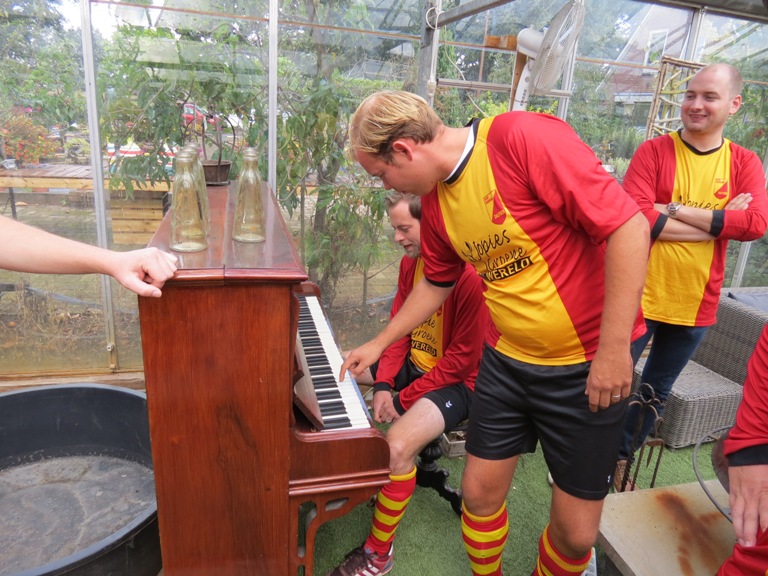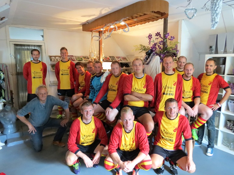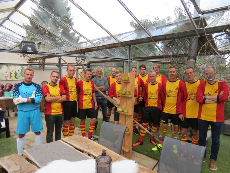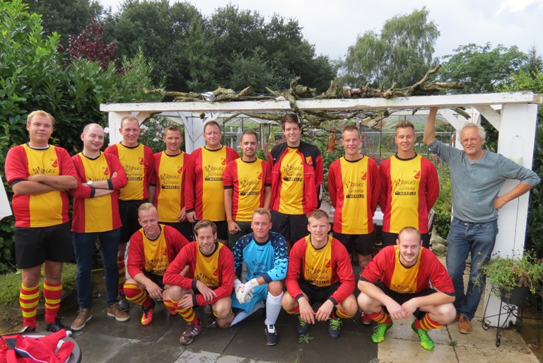 Voorafgaande aan de bekerwedstrijd tegen USV 3 ging het 5e team van SV Dalfsen op excursie bij hun shirtsponsor Jopie’s Groene Wereld aan de Welsummerweg in Dalfsen. Joop Bekedam heette het team van harte welkom en verzorgde een kleine verrassende rondleiding op het bedrijf. Allereerst werd de kadowinkel aangedaan, een sfeervol ingerichte ruimte met diverse kadoartikelen. Vervolgens werd een bezoek gebracht aan de theetuin waar het team voor de fotograaf poseerde in het frisse groen. Tenslotte werd onder pianomuziek een foto gemaakt in het kassencomplex waarna de excursie werd afgerond. Het gehele team was verbaasd over de veelzijdigheid van Jopie’s Groene Wereld en stond versteld van de vele mogelijkheden op het terrein. Na het overhandigen van de traditionele soccerbitter en twee flesjes clubshampoo werd de sponsor hartelijk bedankt en ging het team vol inspiratie richting Sportpark Gerner voor de wedstrijd tegen USV 3.