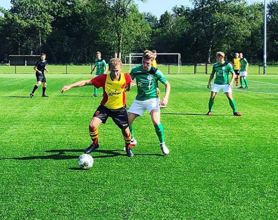 Onder een heerlijke nazomerzon zag het publiek een gelijkopgaande eerste helft. Daarin gebeurde niet al te veel voor de beide doelen. Heino was รฉรฉn keer gevaarlijk met een schot dat van dichtbij over vloog, terwijl Jeroen Kamphuis aan de andere kant doelman Robin Keizer op zijn pad vond.