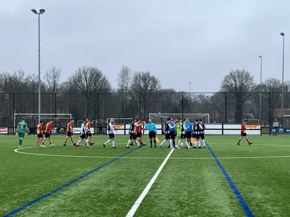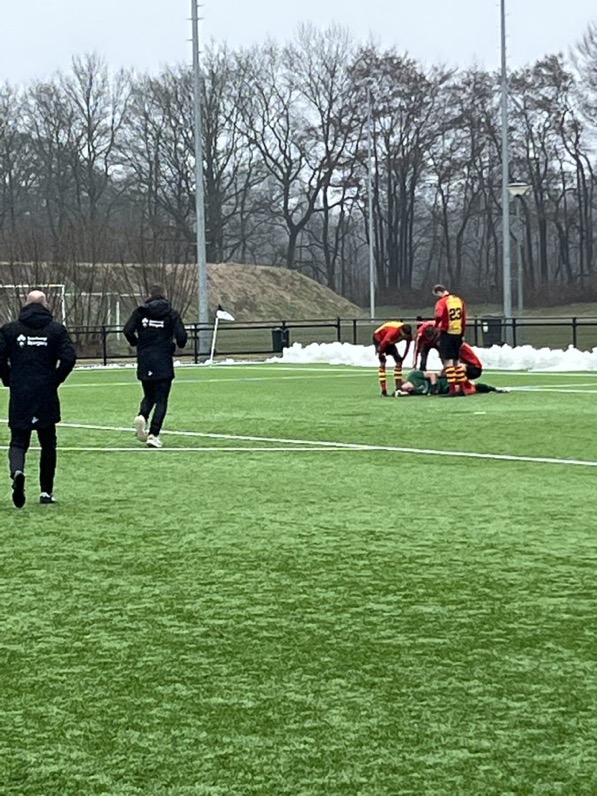 Al binnen tien minuten raakte doelman Mark Knol geblesseerd en al gauw werd duidelijk dat de jarige niet verder kon. Enigszins verrassend nam veldspeler Dann Kottink plaats onder de lat waarna het spel verder kon. Roden kwam echter voor rust nog op een 2-0 voorsprong door twee doelpunten uit dode spelmomenten.
