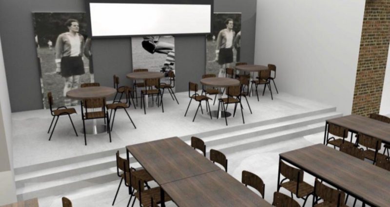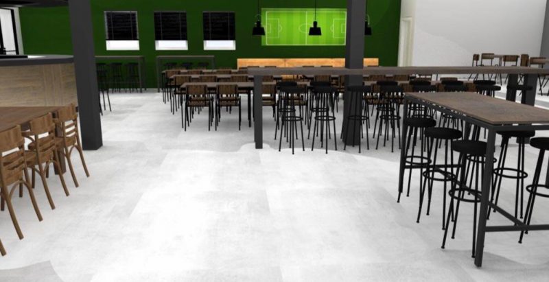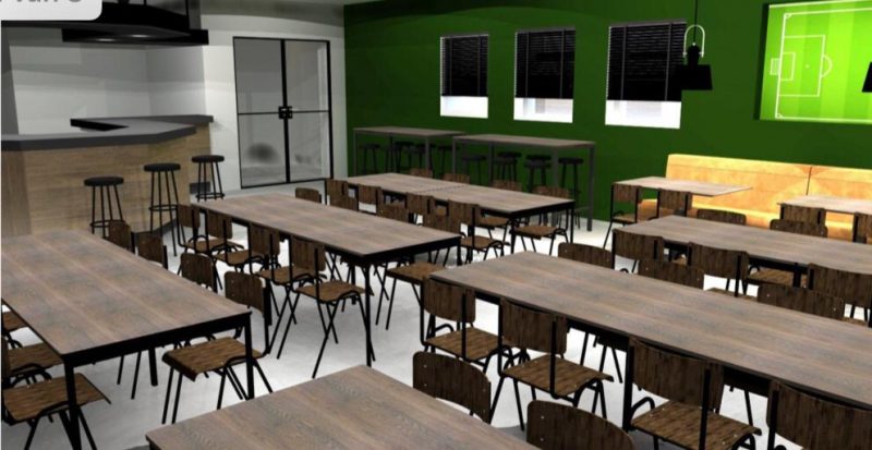 De grootste werkzaamheden gaan komende zomer plaatsvinden. Na afloop van het voetbalseizoen wordt gestart met de make-over. De oplettende kantinebezoeker zal het echter niet zijn ontgaan dat de eerste klus inmiddels geklaard is. Achter de bar is tijdens de kerstvakantie meer ruimte gecreëerd voor het kantinepersoneel, waarbij bovendien een fraaie kast is geplaatst, zoals te zien op de bovenste foto. Daaronder het ontwerp voor de make-over.