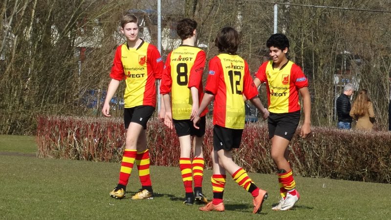 Heb de mannen nog ff een hart onder riem gestoken. De tweede helft kon beginnen. Hier begonnen we heel goed aan, Kariem legde de 1-3 in het net. Daarna nog ff 2 wissels gedaan. Dit pakte goed uit want Bram legde de 1-4 erin. Ze waren door het dolle heen. Meteen na de aftrap werd de bal weer afgepakt van de tegenstander. Hieruit scoorde Kariem zijn derde dus een hattrick, 1-5. Wat gebeurde daar toch op het veld in Kampen. Een strijdend team met allemaal de koppen de zelfde kant uit en met goede wil. Want Sander scoorde in de rest van de wedstrijd de 1-6 en de 1-7 en de 1-8. Wederom een geweldige hattrick. De mee gereisde ouders konden genieten van veel doelpunten en het mooie weer. Na het eindsignaal kon ik alleen maar complimenten geven aan de mannen . Met elkaar gewerkt naar deze mooie score, GE-WEL-DIG.