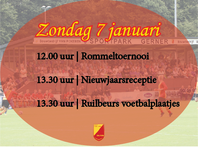 Het nieuwe jaar begint sportief, want vanaf 12.00 uur is er voor de senioren en junioren (O19, O17 en O15) een rommeltoernooi. De pupillen (O13, O11 en O9) zijn uiteraard ook welkom om onderling een balletje trappen. Na afloop van het rommeltoernooi verplaatst het programma zich naar de kantine van SV Dalfsen.