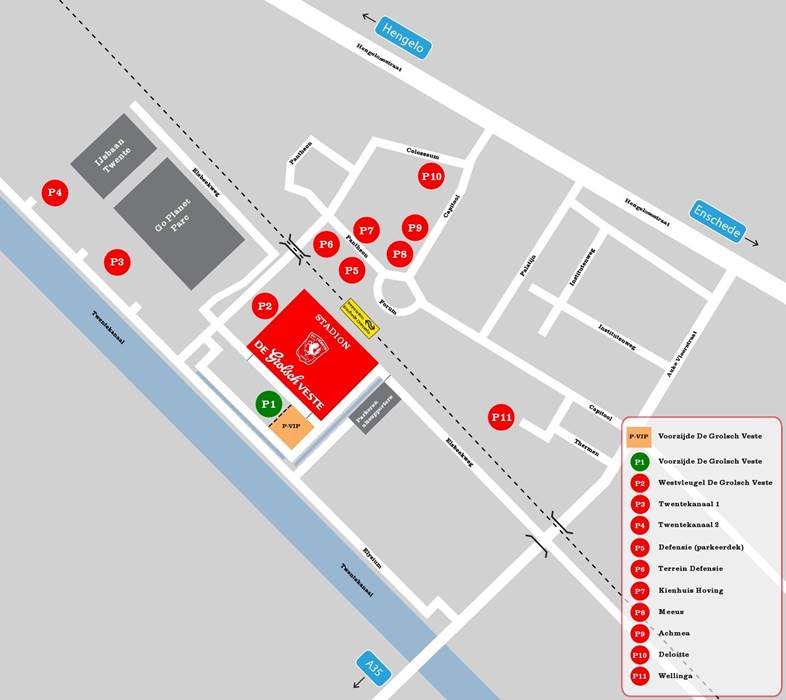 Op zaterdagmorgen van 09.00 – 10.30 uur en zondagmorgen vanaf 10.00 uur kunnen de entreekaarten betaald en afgehaald worden in het clubgebouw van SV Dalfsen. De bussen vertrekken om circa 10.15 uur vanaf de parkeerplaats van Sportpark Gerner. In de bus worden we getrakteerd op een lekkere hapjes aangeboden door Cafรฉ Restaurant Het Roode Hert. We verwachten rond 11.45 uur bij het stadion te zijn waar de bussen op parkeerplaats P11 geparkeerd kunnen worden, vanaf hier is het een korte wandeling naar de Grolsch Veste. Via ingang G is ons vak 324 te bereiken, dit vak is speciaal voor SV Dalfsen gereserveerd.