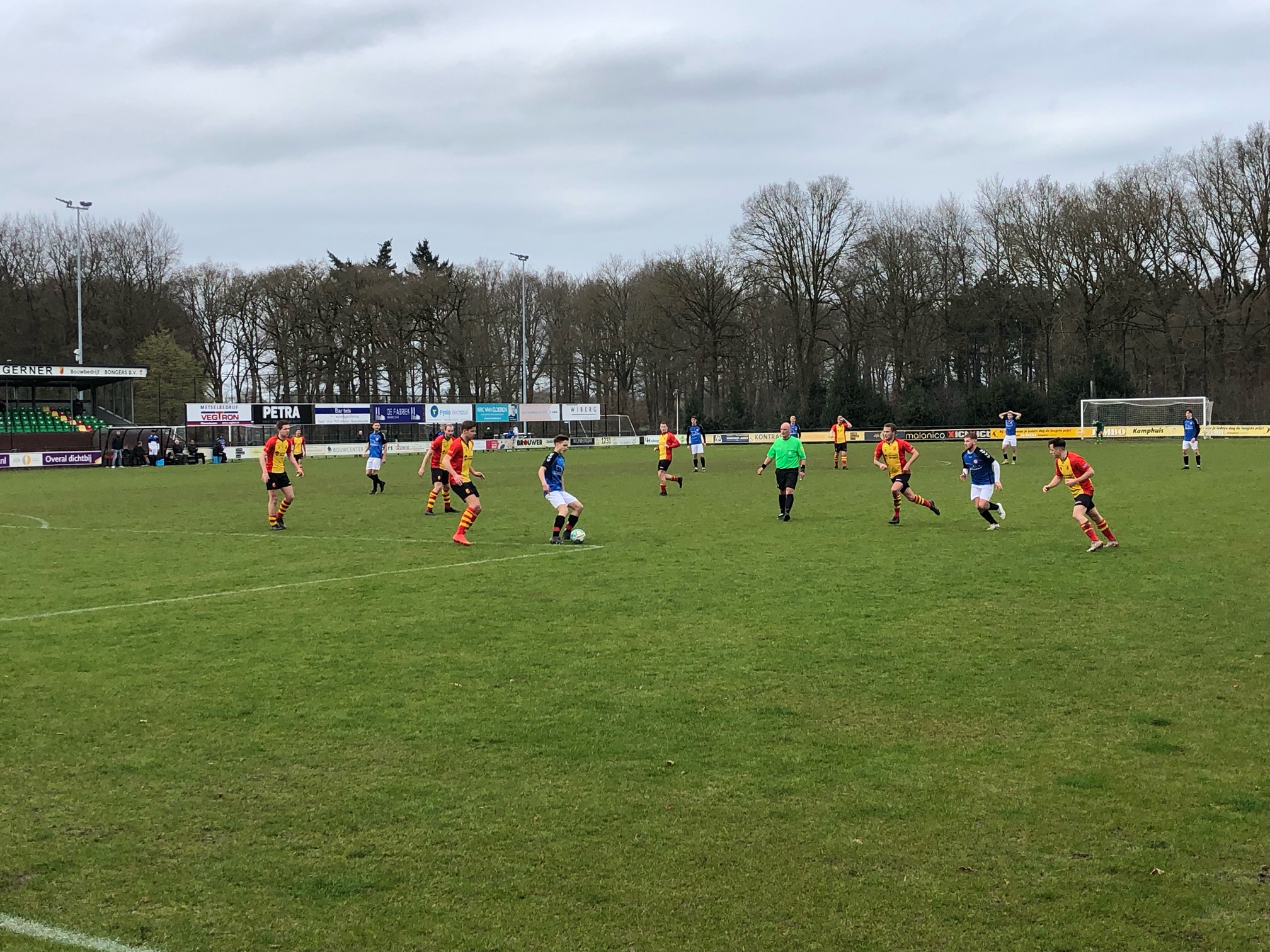 Dalfsen startte sterk en nam het initiatief dat gelijk tot de eerste twee kansen leidde. Een lichte overtreding op Vince van den Anker in de 16 meter werd hierbij helaas niet gehonoreerd door het goed leidende trio. Maar na een sterke start nam Emmen het initiatief over en wist met goed positiespel Dalfsen te overklassen. In de 30e minuut leidde dit tot een doelpunt voor Emmen en dit was gezien het wedstrijdbeeld geheel terecht. Dalfsen beperkte zich tot verdedigen en wist de schade tot de rust te beperken tot één doelpunt.