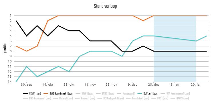 Komende zondag speelt SV Dalfsen een thuiswedstrijd tegen VKW uit Westerbork. VKW, voluit Vlugheid Kracht Westerbork staat in de ranglijst net onder Dalfsen. Het verschil is slechts drie punten en die worden zondag verdeeld.