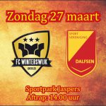 Defensief stond het team als een huis en ook doelman Mark Knol was weer prominent aanwezig met de nodige reddingen. Ondanks de goede intenties van Winterswijk was het Dalfsen dat op voorsprong kwam, in de 34e minuut wist Daan van der Vegt te scoren uit een voorzet. Winterswijk werd sterker en sterker en kreeg nog voor de rust een strafschop, die via de paal naast ging.