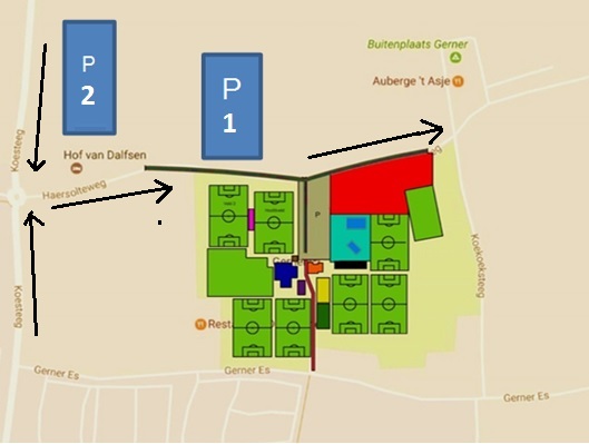 – Aan de andere zijde van de Haersolteweg, tegenover Sportpark Gerner, wordt een stuk land ingericht als Parkeerplaats 1 voor automobilisten zonder parkeerkaart. Deze is alleen te bereiken door vanaf de Koesteeg de Haersolteweg in te slaan. De Haersolteweg is op zaterdag 8 juli een eenrichtingsweg. Doorgaand verkeer vanaf de Hofmanssteeg/Oosterdalfsersteeg is gestremd.